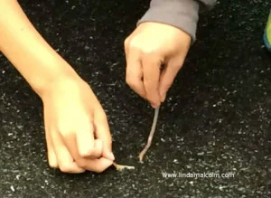What next? I could jump in and get it. But I don’t have trunks and the water is pretty cold. Hey, I could cut the line and wait for the tide to go out… then get my bobber! Yes! And, in the meantime you get to learn how to string your own fishing line.