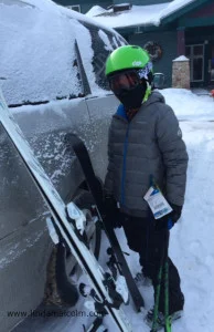 The first ski attempt for Liam ended in tears before he even got on the slopes. We were coaxing him to put his feet into his ski boots – the ones he wore last year. We rented boots and skis that weekend after that torturous experience. If I knew he wore bigger shoes than last year, why didn’t I assume he would need bigger ski boots?? I don’t know. Perhaps because the ski boots look three times bigger than our feet.