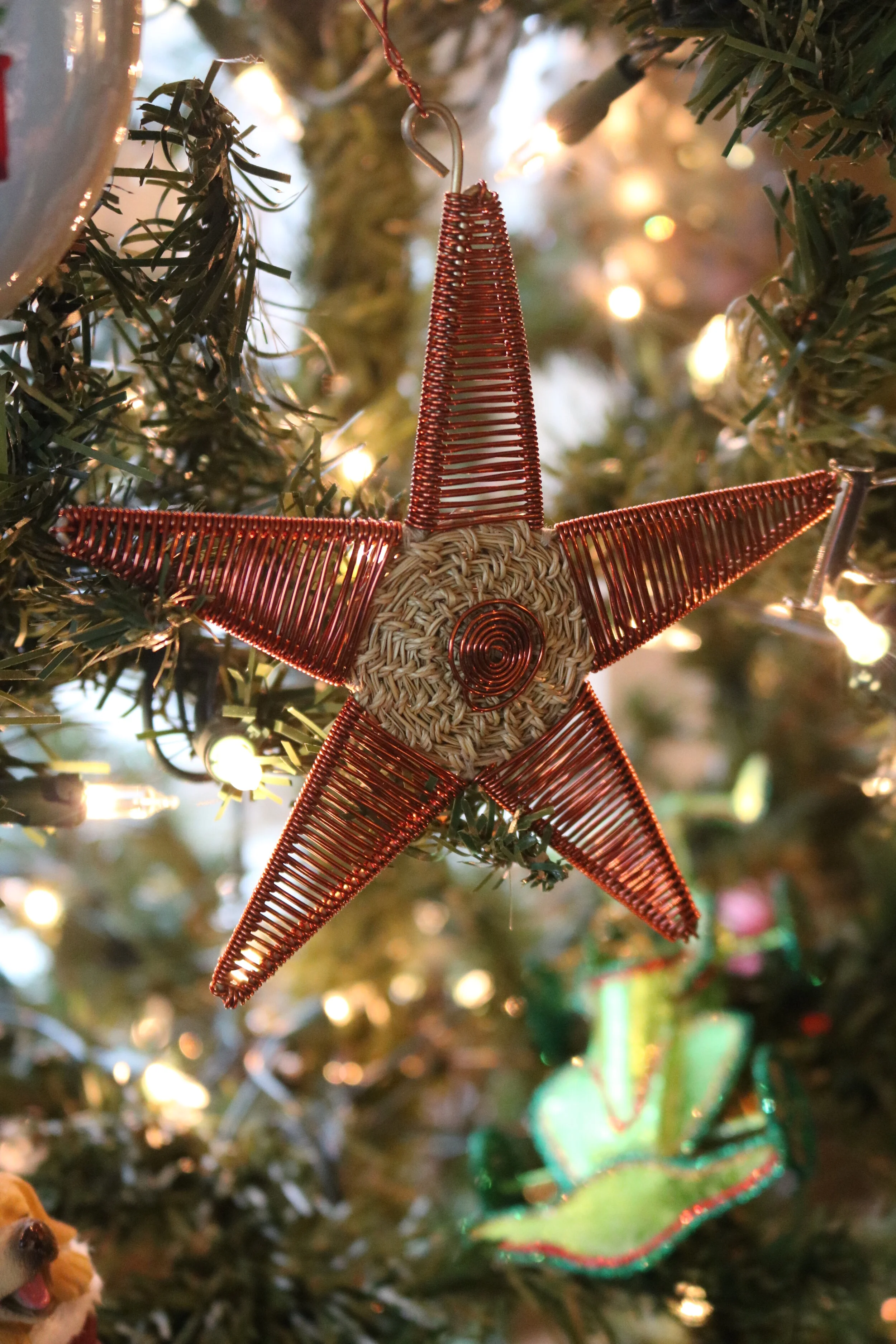 As I felt the strength of the wire, it became clear what ornaments would be hanging on the tree.  I wouldn’t be gathering four tubs of ornaments and picking through them to hang a variety from each tub on the tree.  The handmade lightweight ornaments, the kids’ ornaments, the plain glass balls, and the thin glass icicles are taking a rest this year.  The theme is practical: I have a tree with strong branches; I would be hanging only heavy ornaments – the ones that didn’t all make it on the soft branches of our past real trees.