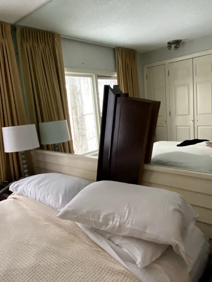 We were staying in a two-bedroom unit with a full kitchen and two bathrooms.  That sounded rather luxurious until its simple truth was revealed.  The lights didn’t work in the bedroom – unless I wrapped the lamp cord just so around the bedside table.  Huge pieces of wallpaper were peeling off the wall under the windows. In looking for an outlet near the bed, I followed a lamp cord behind the bed but couldn’t see to find the outlet.  I pulled the headboard to move the bed away from the wall.  The headboard promptly fell off the wall; it was a wanna-be headboard. In my continued efforts to find the outlet, I leaned on the pillows – and the lamp went out.  When I pulled away from the pillows, the lamp came on.  I tested this phenomenon a dozen times, and it worked like a perfect lab test.