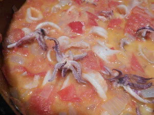 “. . . I had leftover ingredients from the weekend to work with: a bowl of overripe tomatoes, an onion, some garlic, two lemons, a handful of linguine, a bottle of Chardonnay, and one and a half pounds of squid. The squid was left over from the paella Bill had made Saturday night . . . As the tentacles hung in front of my nose, I murmured, “I’m a heck of a long way from Iowa.” (p. 133-134, Cornfields to Codfish)