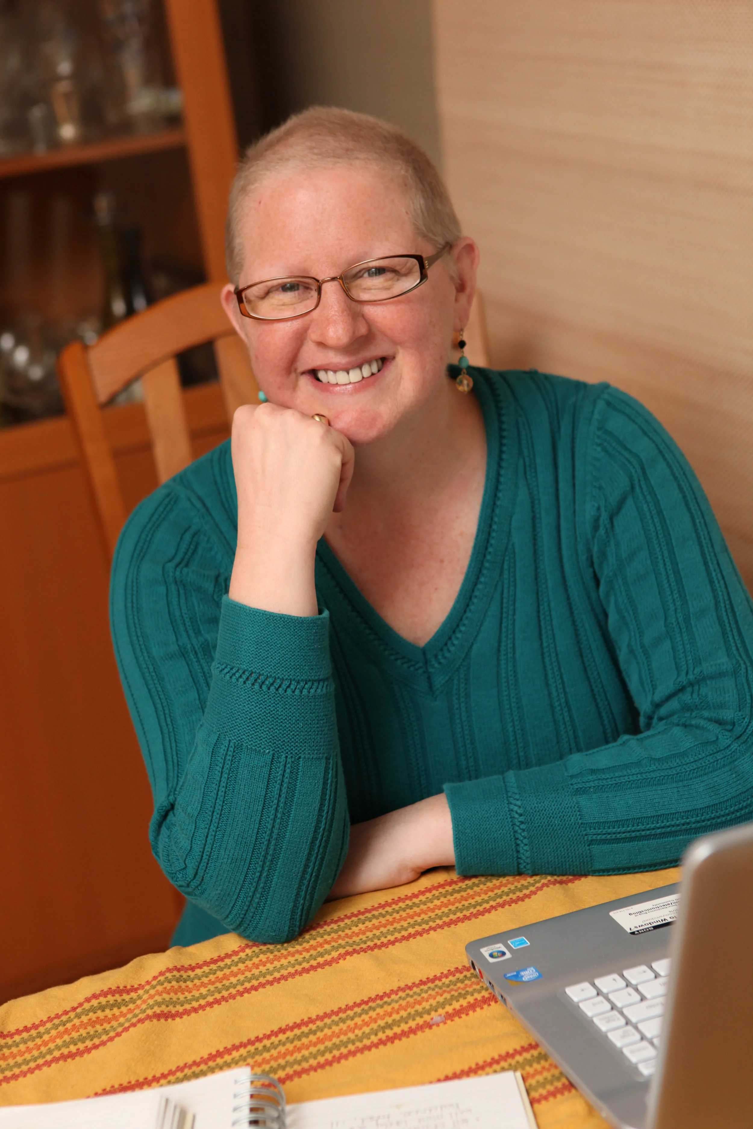 These photos are of me from 2010, toward the end of chemo treatment for breast cancer. While breast cancer left me feeling powerless in many ways, I did not want to look like a woman going through chemo. I didn’t want pity. I wanted my family and friends to see “Linda” when they looked at me. A little colored lip gloss, dangly earrings, new glasses that were the color of my old hair, and a wig were all part of my Chemo Camouflage. My eyebrows and eyelashes had fallen out, so I relied on my glasses to take their place. This Camo made me feel better, putting a bit of power back in my court.